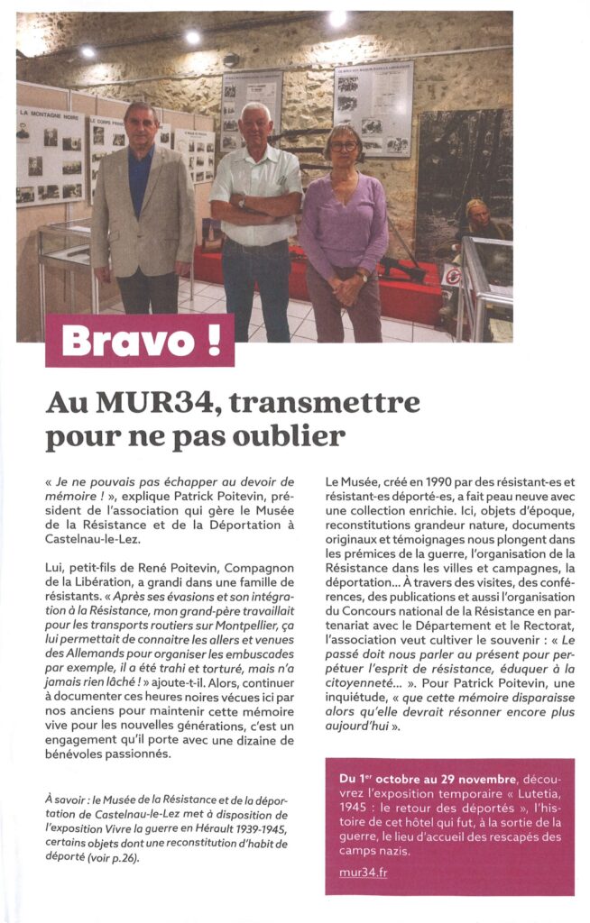 Mme Patricia Mirallès, secrétaire d’État auprès du ministre des Armées, chargée des Anciens combattants et de la Mémoire, a souhaité visiter le Musée lors de sa venue à Castelnau-le-Lez en avril.