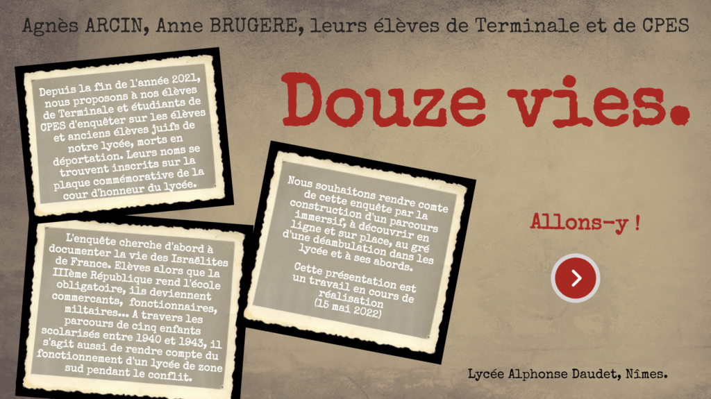 De 2020 à 2023, des élèves du lycée Alphonse Daudet à Nîmes ont enquêté sur les élèves et les professeurs dont les noms sont inscrits sur la plaque commémorative dans la cour d’honneur de leur établissement. Ce projet s’est surtout centré sur le destin de douze élèves morts en déportation.