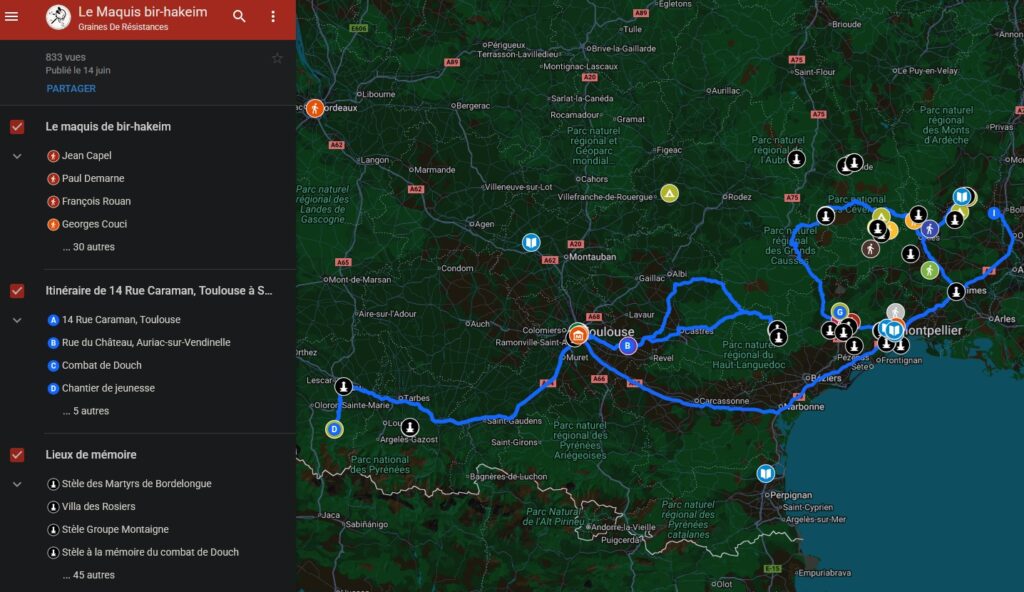 Des élèves de 3ème du Collège Gérard Philipe de Montpellier ont créé une entreprise nommée « Graines de Résistance », consistant à développer des cartes interactives qui ont pour but de retrouver les traces de la résistance à Montpellier et dans sa région.
